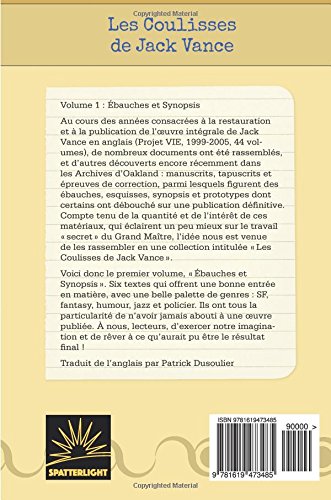 Le Titre Du Livre : Les Coulisses de Jack Vance, Vol. 1 : Ébauches et SynopsisMoyenne des commentaires client : 3.7 étoiles sur 5 971 commentaires client